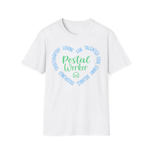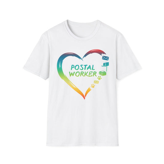 Proud Postal Worker T-Shirt, Unisex Softstyle Tee, Postal Worker Gift, Rainbow Heart Shirt, Appreciation Apparel