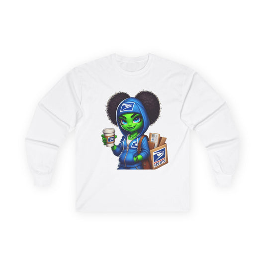 Alien USPS Delivery Long Sleeve Tee, Fun Gift for USPS Fans, Comfy Tee, Unisex Shirt for Mail Lovers, Office Humor Apparel, Unique